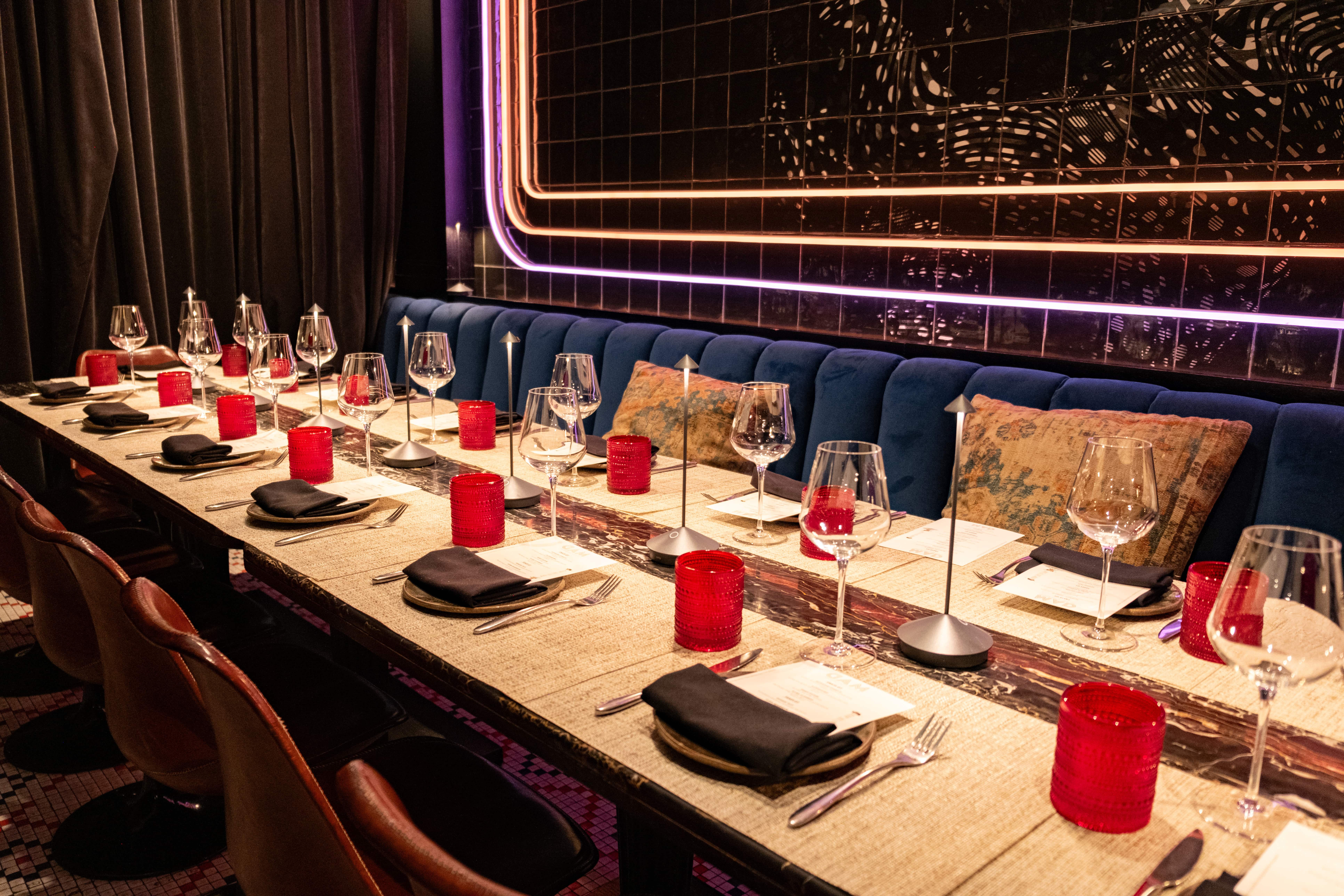 The Violan Room is a semi-private space adorned with classic tile murals, reflecting the vision of MAD architect Lázaro Rosa-Violán. This area can be seamlessly paired with either the Picasso Room or the Miró Room to accommodate larger parties, or used as a stylish reception space before transitioning into one of the adjoining private dining rooms.